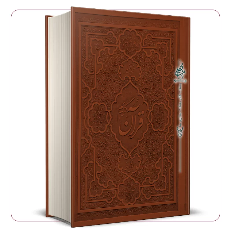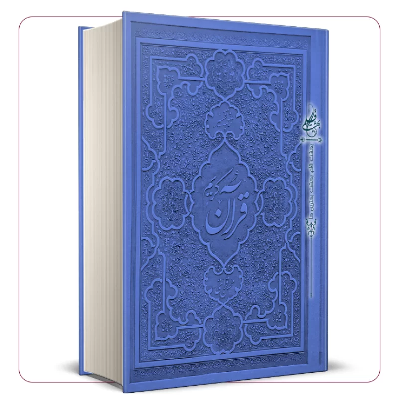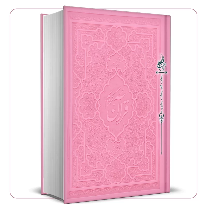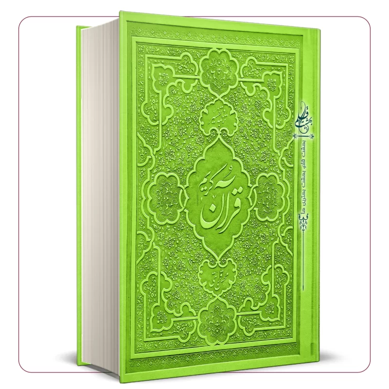 - متن قرآن بصورت رنگی (چهار رنگ) چاپ شده، بصورتی که ترجمه فارسی در زیر آیات و تفسیر و نکات آن در زیر صفحه و صفحه مقابل می باشد.